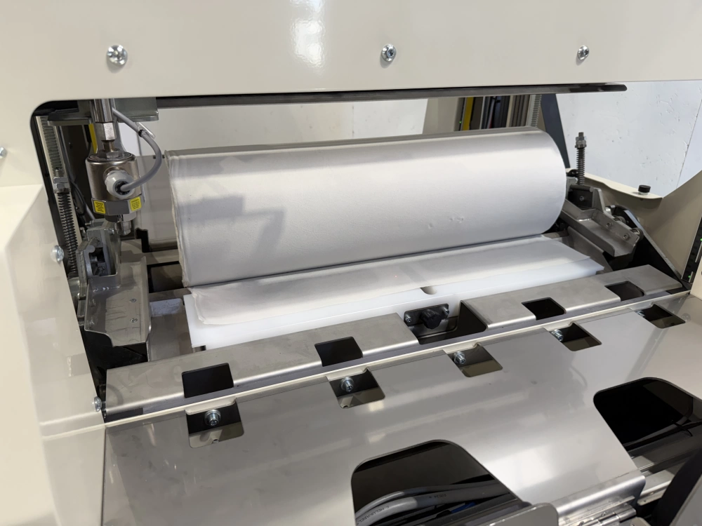 Une rampe de soufflage assure le déroulement de la feuille, qui vient ensuite se plaquer sur une rampe aspirante pour un maintien optimal.